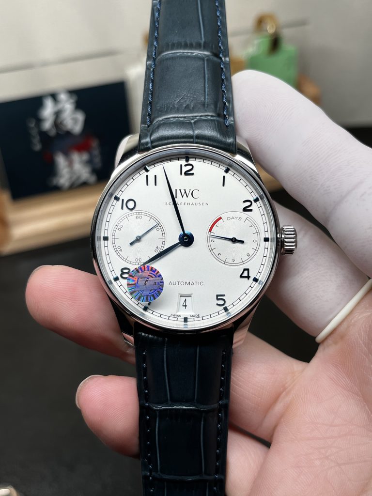 - プロの視点: 時代がどう変わろうと「ポルトギーゼ 7デイズ」は常にトップに君臨します。2026年にZF工場が発表したV8バージョンは、かつての「ダミープレートによる一眼仮」や「歯車が動かない」という問題を完全に解決しました。現在のシースルーバックから見えるピジョンブラッドのルビーとゴールドの刻印は極めてリアルで、右側のパワーリザーブインジケーターは実際に機能します(実測で約5日間の稼働を確認)。光の加減で深みのある青を放つブルースチール針とホワイトダイヤルの組み合わせは、ビジネススーツにおける無敵の武器です。