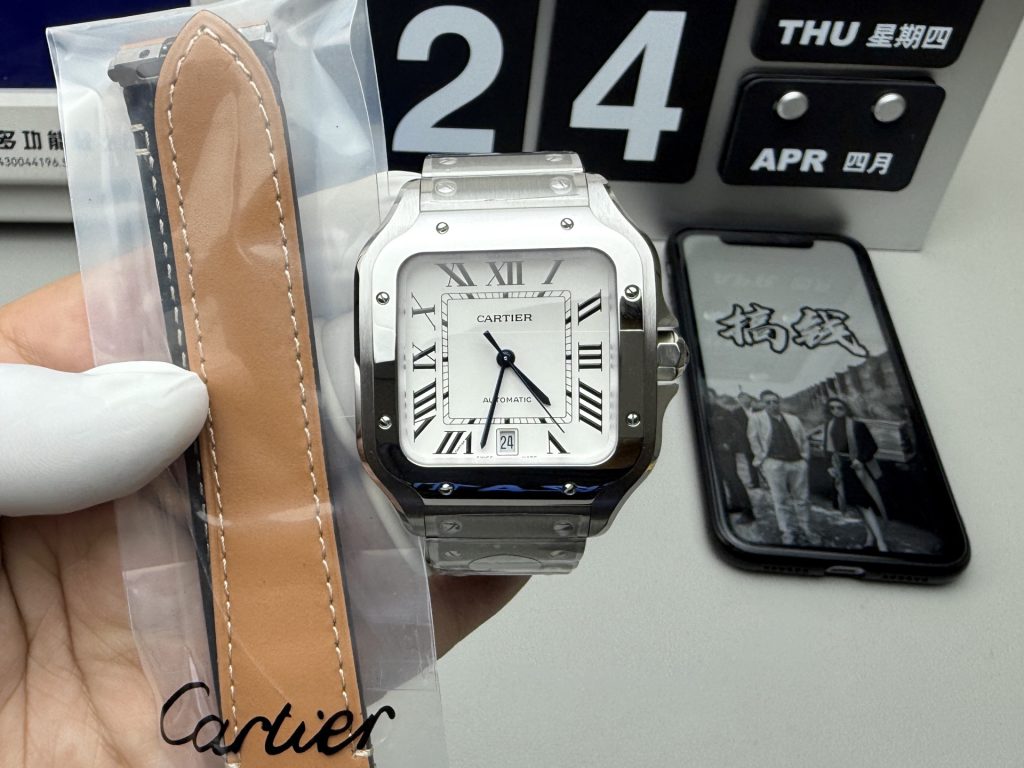 - プロの視点: AF工場がバロンブルーを支配するなら、サントスはBV工場の絶対領域です。サントスの魂は、ベゼルにあしらわれた8つのビスと、ストラップのワンタッチ交換機構にあります。2026年にBV工場が発表したV2版は、クイックスイッチ・システムを完璧にクローン化しました。工具を使わず素手で瞬時にステンレススチールブレスと革ベルトを交換でき、その感触はシルクのように滑らかです。ケースのヘアライン仕上げも繊細で、現在市場で最も安定した「スクエア型スポーツウォッチ」の頂点です。
