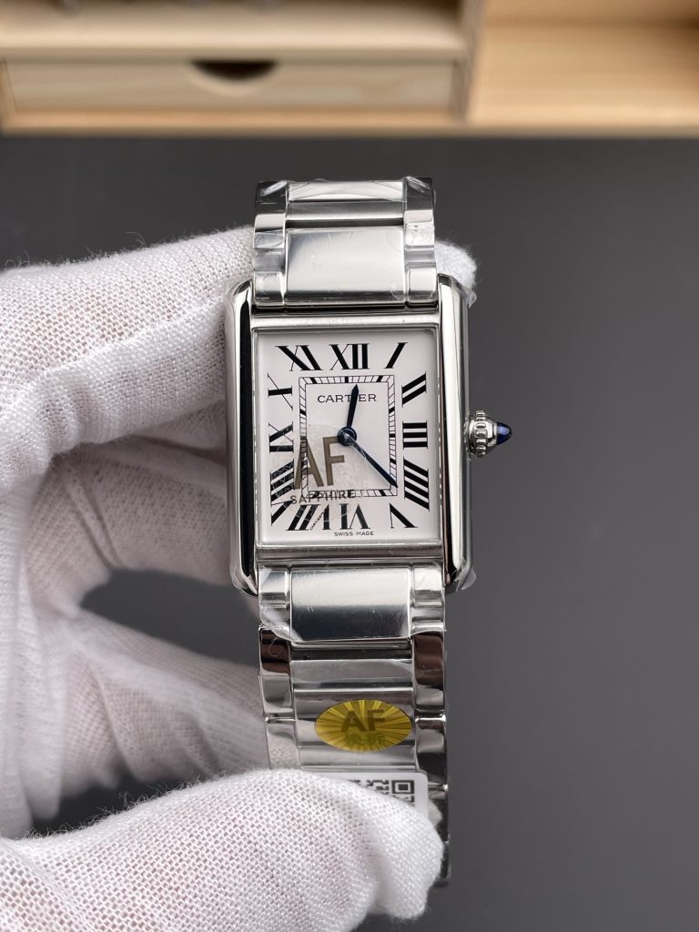 - プロの視点: タンクシリーズには複雑なベゼルはなく、ケースの研磨と文字盤の仕上がりが全てを語ります。AF工場のタンクソロは究極のエレガンスを体現しており、わずかにアイボリーがかったシルバー文字盤と、ローマ数字の立体感は非の打ち所がありません。強くお勧めしたいのはクォーツモデルです。純正と完全に一致する「極薄」を実現しているだけでなく、機械式時計特有のスイープ運針の破綻(振動数の違いなど)を気にする必要がありません。ビジネスシーンでの最高のパートナーです。