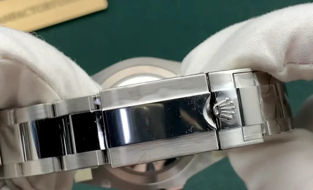 - スチール: ケースとブレスレットには**オイスタースチール(904L)**を使用しています。この合金は、模倣品の90%で使用される標準的な316Lスチールよりも耐食性に優れ、高い光沢を持ちます。重量は正規品と区別がつきません。
