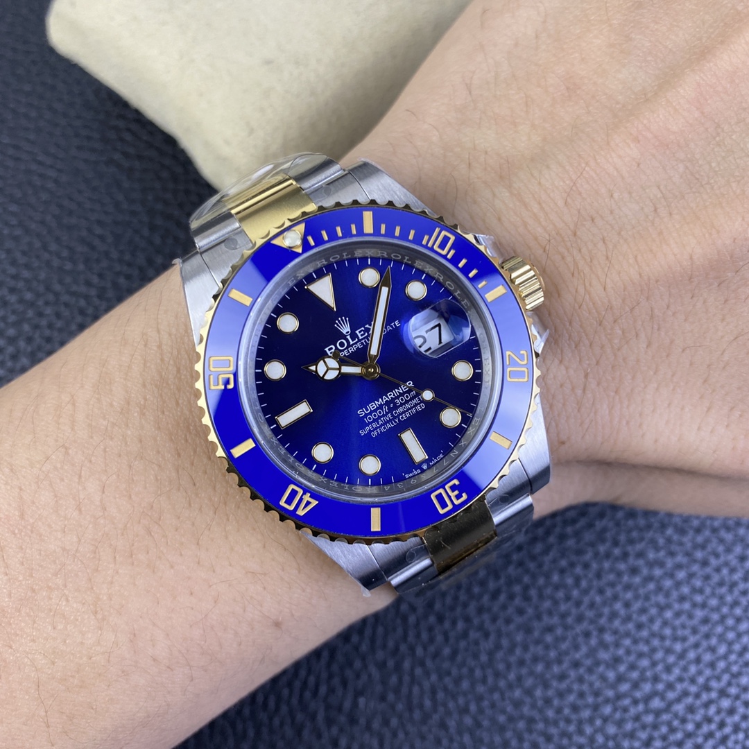 「外観の再現度において、Clean工場の右に出る者はいない」。レプリカ時計業界でそう語り継がれる絶対的王者が放つ、サブマリーナー・コンビモデル(126613LB / 通称:青サブ)の決定版です。Clean工場の代名詞とも言える「自社製セラミックベゼル」は、純正品と見分けがつかない深みのあるブルーと、剥がれないプラチナコーティングを実現。さらに、コンビモデルの命である「イエローゴールドの色味」を徹底的に研究し、赤みや青白さを排除した「純正同等の暖かみのあるゴールド」を再現しました。ムーブメントには安定性に定評のある3235クローンを搭載。「ルーペで見ても粗が見つからない」ほどの圧倒的な外装クオリティを求める、美観至上主義のユーザーに捧げる究極のスーパークローンです。