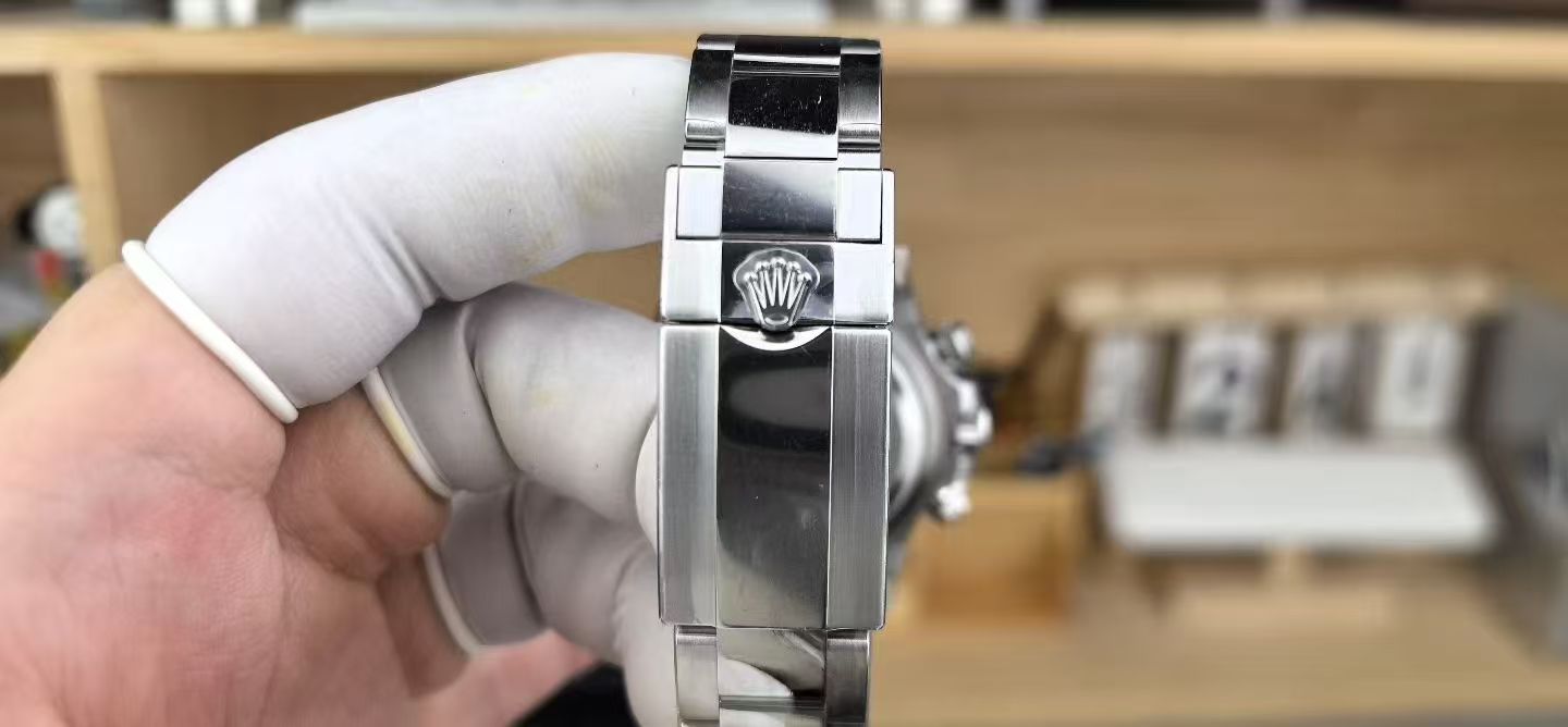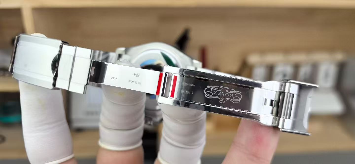- ブレスレット:904Lオイスターブレスレット。クラスプコードには、高品質な個体によく見られる「M5X」などの刻印を確認。ブレスのコマ間の遊びも適切に調整されています。