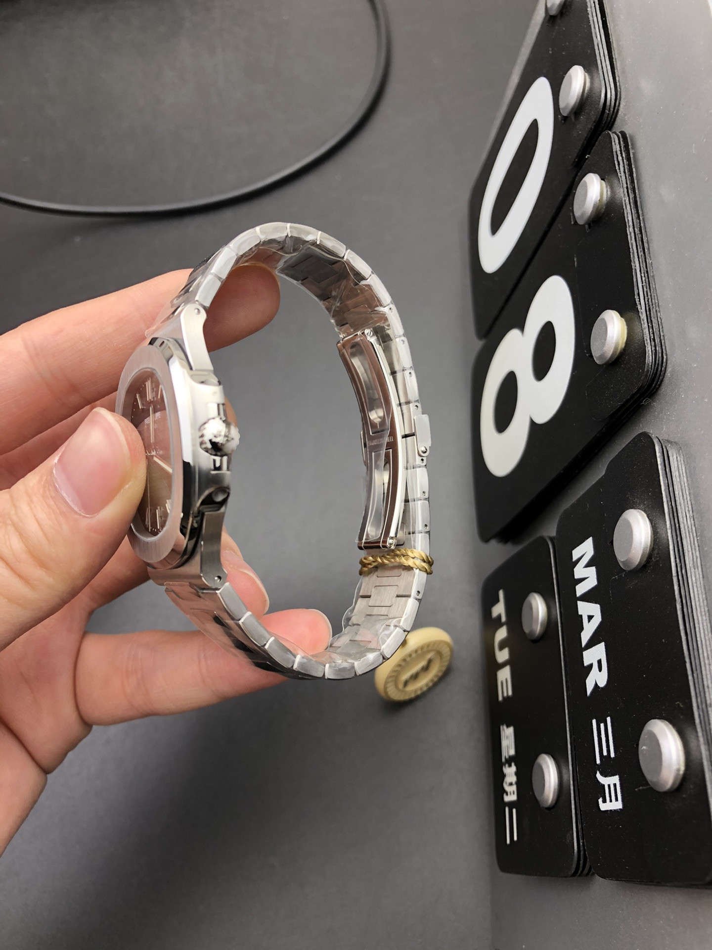 PPFファクトリーが誇るノーチラス5711の決定版。完全再設計されたCal.26-330SC一体構造ムーブメントを搭載し、外装から内部構造に至るまで原装を超える精密度を実現。独自の「ブルー・チャーム」文字盤や新型ブレスレット構造を採用し、まさに“スーパーノーチラス”の名にふさわしい完成度を誇ります。