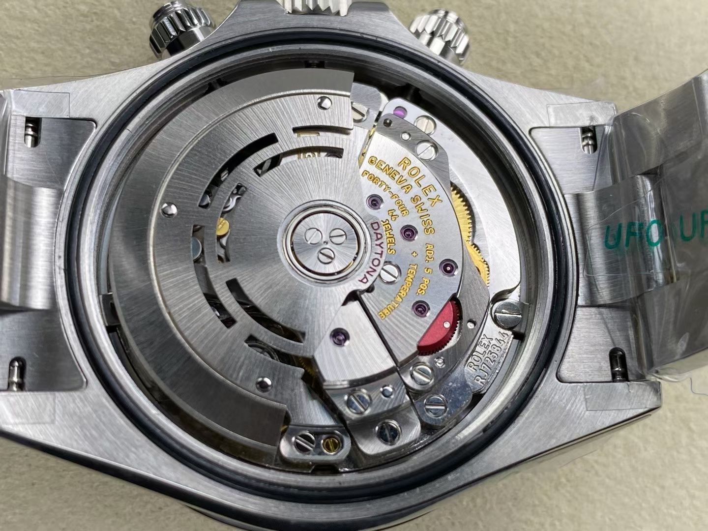 UFO.Factoryの最新作「パンダデイトナ」126500LNが登場。このモデルは、ロレックス・デイトナのオリジナルデザインを忠実に再現しており、特にそのフリースプラング4130ムーブメントが大きな特徴です。フリースプラング技術により、ムーブメントの安定性と精度が格段に向上し、長期間にわたって優れたパフォーマンスを提供します。さらに、904Lステンレススチールを使用したケースと、正確なサイズで作られたこの時計は、オリジナルのディテールを忠実に再現しています。