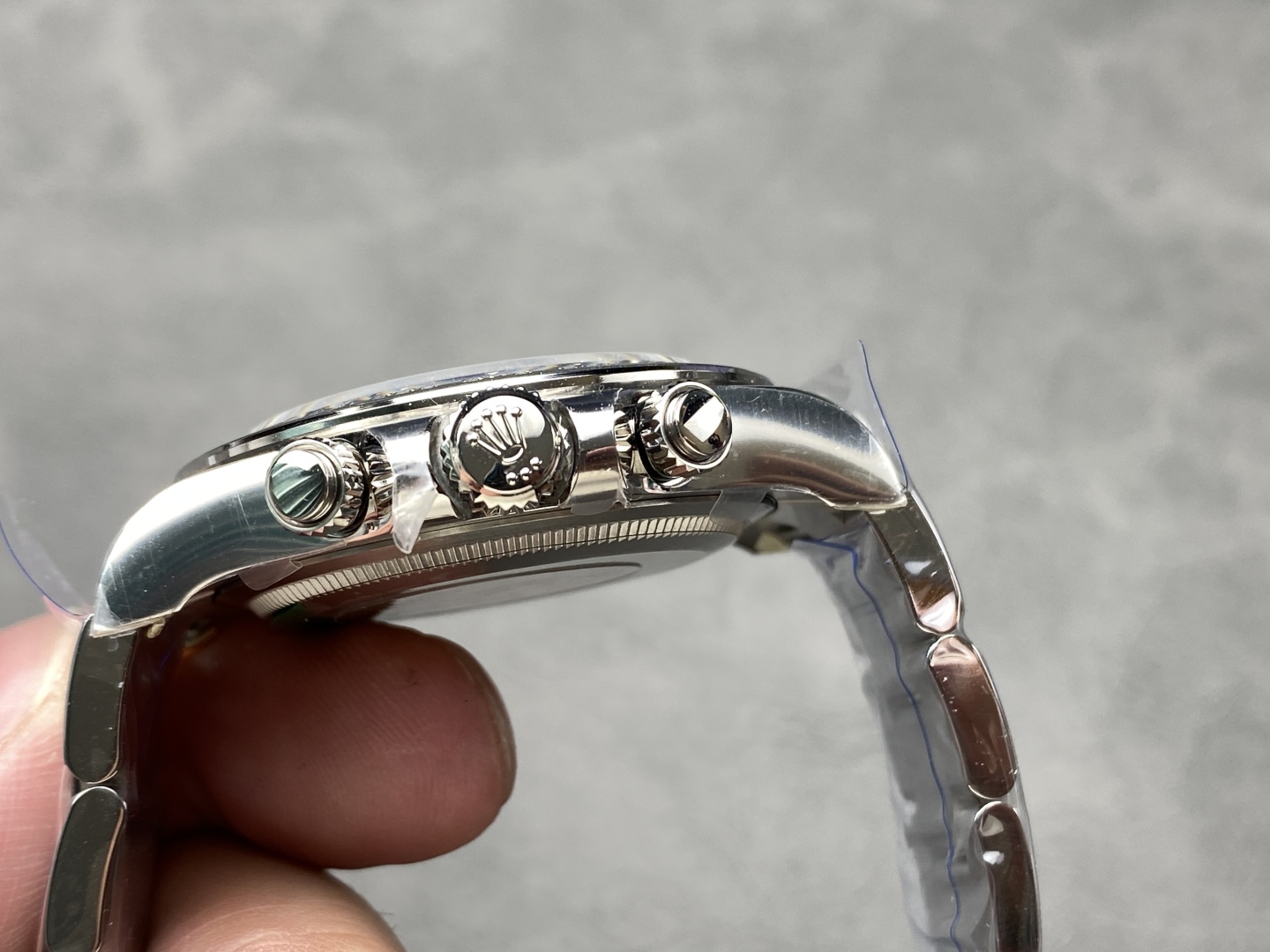 新世代デイトナの特徴である40mmケース、繊細になったインデックス、そして4131ムーブメントのレイアウトを正確に再現した、EWE工場の最新作。