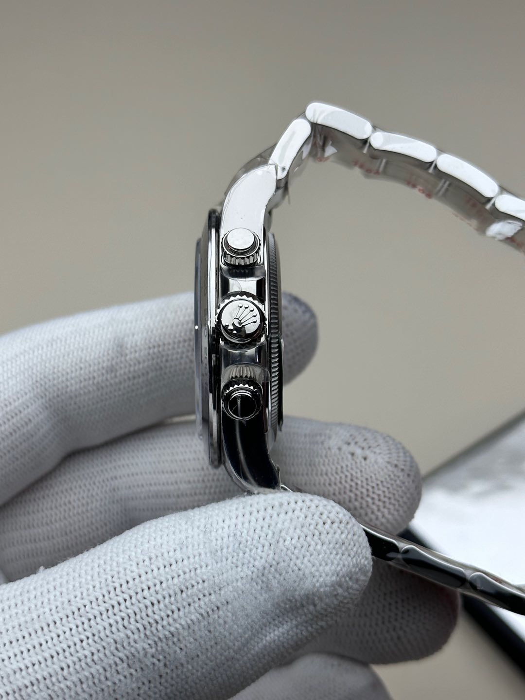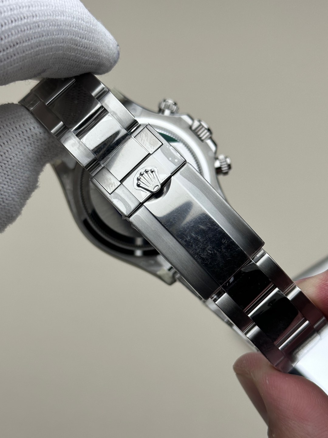 - ベゼル:904Lスーパーステンレススチール。ベゼルエッジのポリッシュ仕上げも忠実に再現されています。