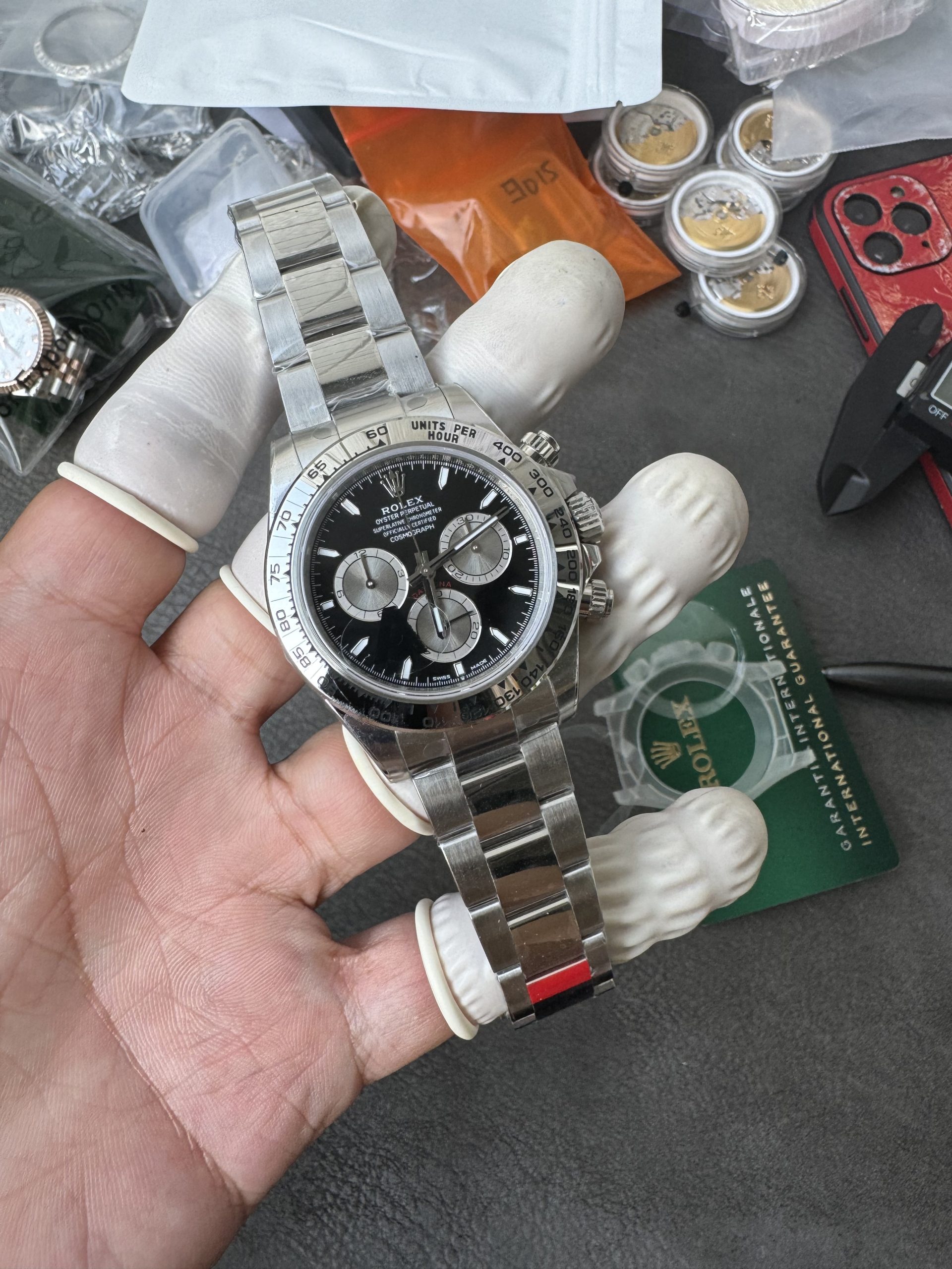 - QC:組立後のタイムグラファー測定(日差・振角・片振り調整)、クロノグラフ全機能の動作・リセット確認、外装傷チェックを実施(合格品のみ出荷)