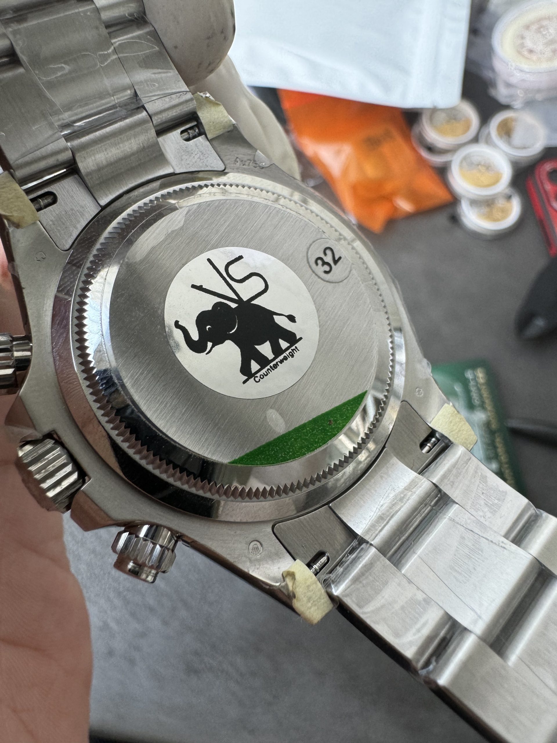 - ケース素材:VS独自開発 特注ヘビーメタル合金。市場の「タングステン銅合金」は酸化しやすく、夏場の汗などでメッキが浮きやすい弱点がありましたが、VSは新素材により耐食性と密着性を大幅に向上させています。
