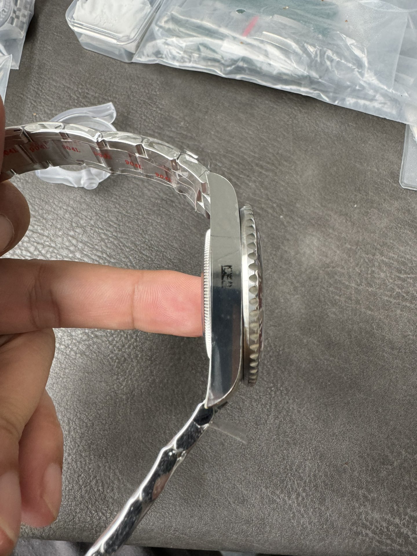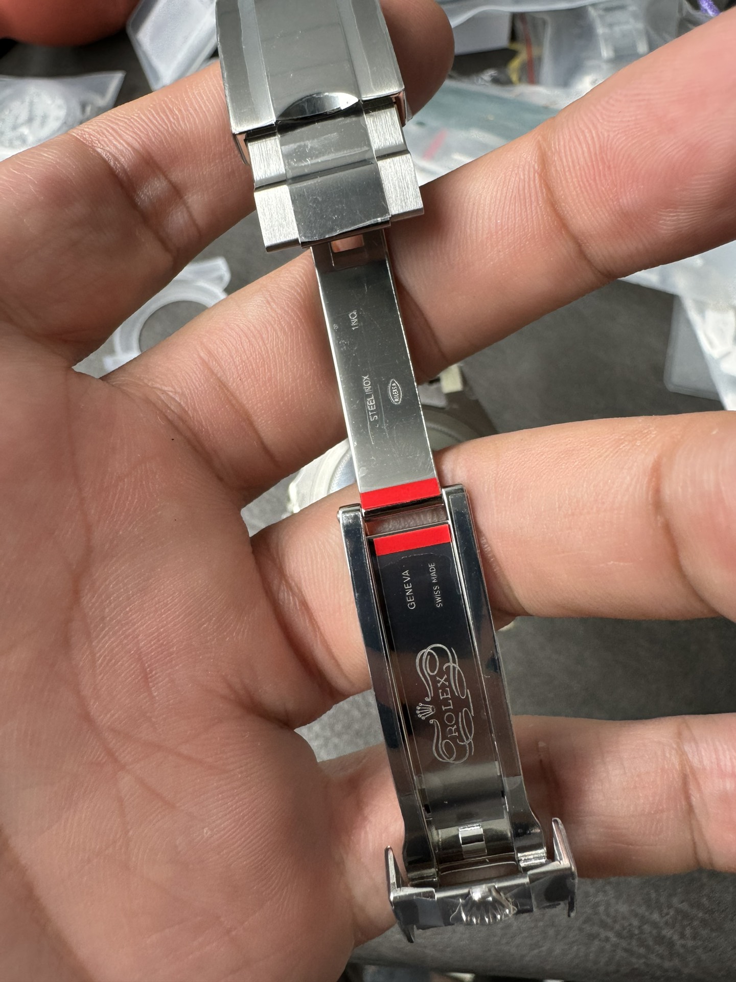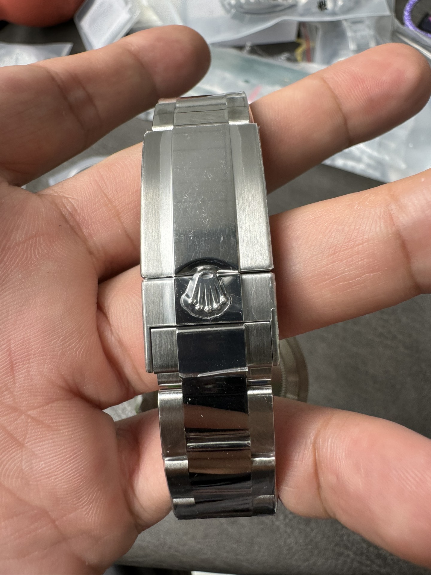 - ブレスレット:904Lジュビリーブレス(AR製)。駒のエッジとつなぎ部分の処理が精密で柔らかい装着感。