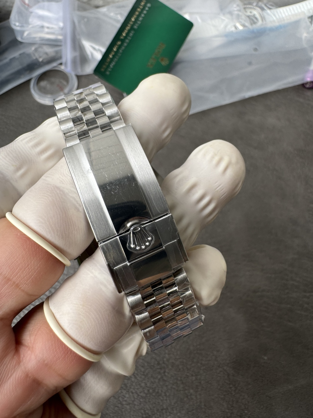 - クラスプ:オイスターロック式クラスプ。5爪部分のエッジ仕上げが非常にシャープで、外観は正規品に完全一致。