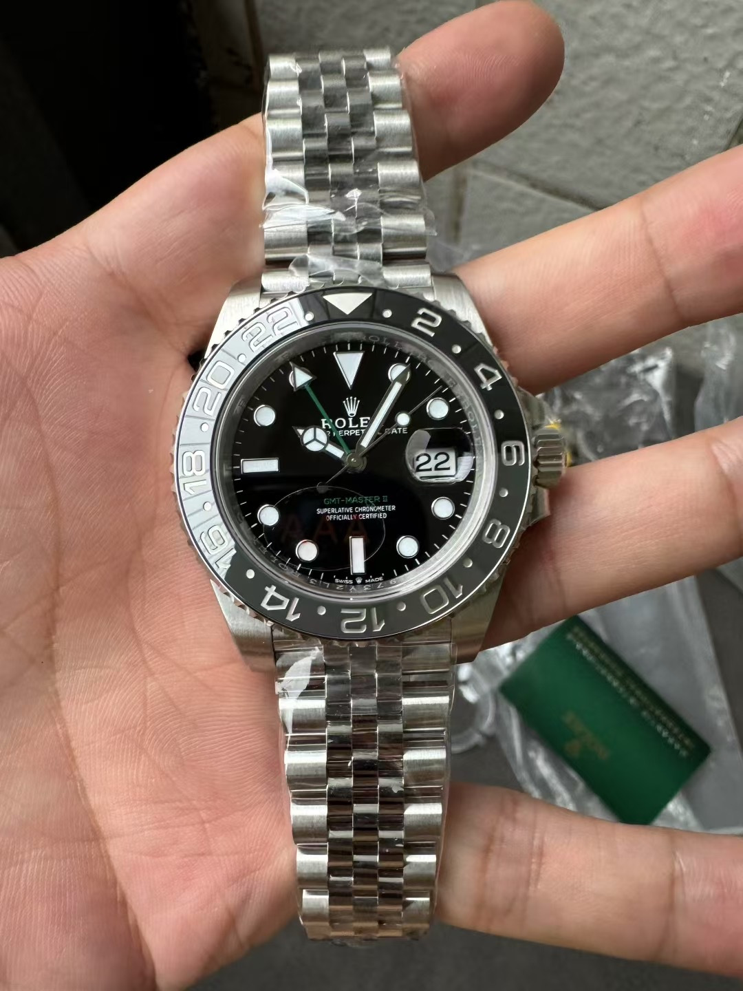 ベゼル、分針、秒針、日付レンズ、さらにはケースの仕上げに至るまで、すべてが正規仕様に完璧に一致し、ディテールで市場の他のバージョンを圧倒します。